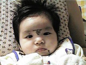 3~4ヶ月検診まで半月以上あったが、この際だからもみ上げの部分だけ少し切ることにした。